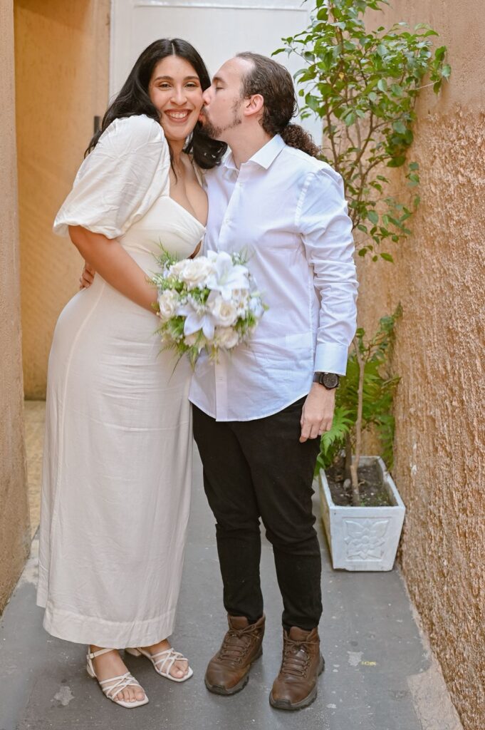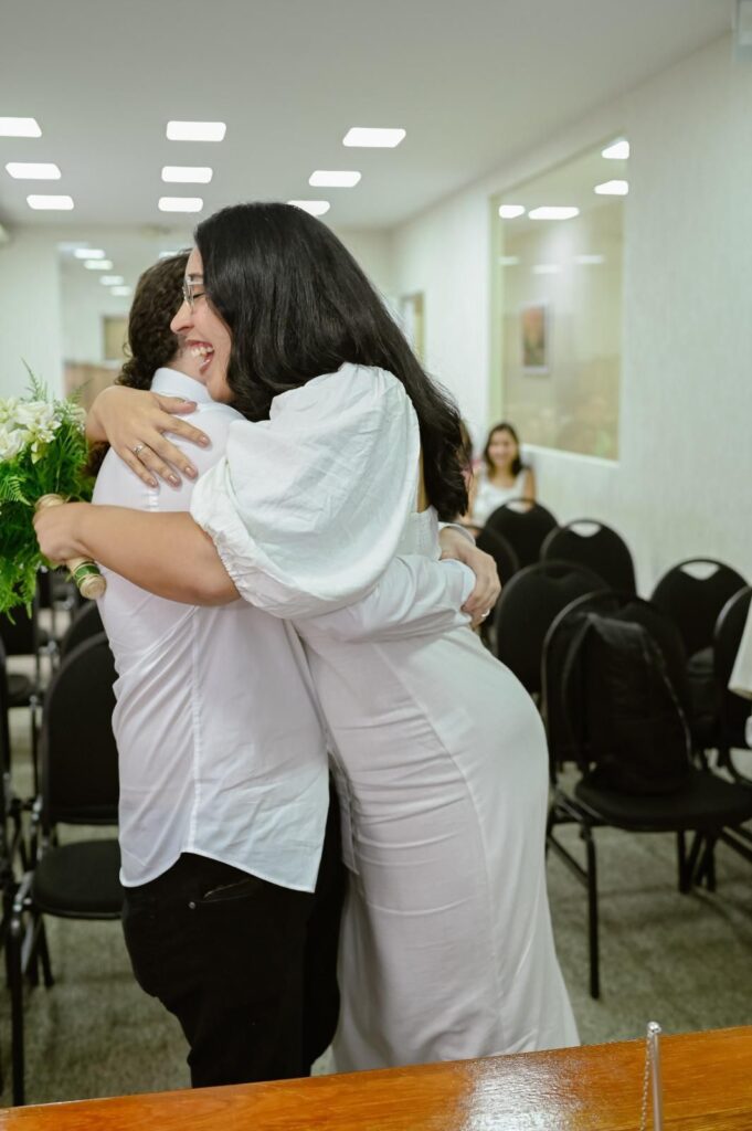 Foi algo simples, no cartório, com a presença dos nossos pais, da minha irmã e do marido dela. Apesar de pequeno, foi cheio de amor e significado.
